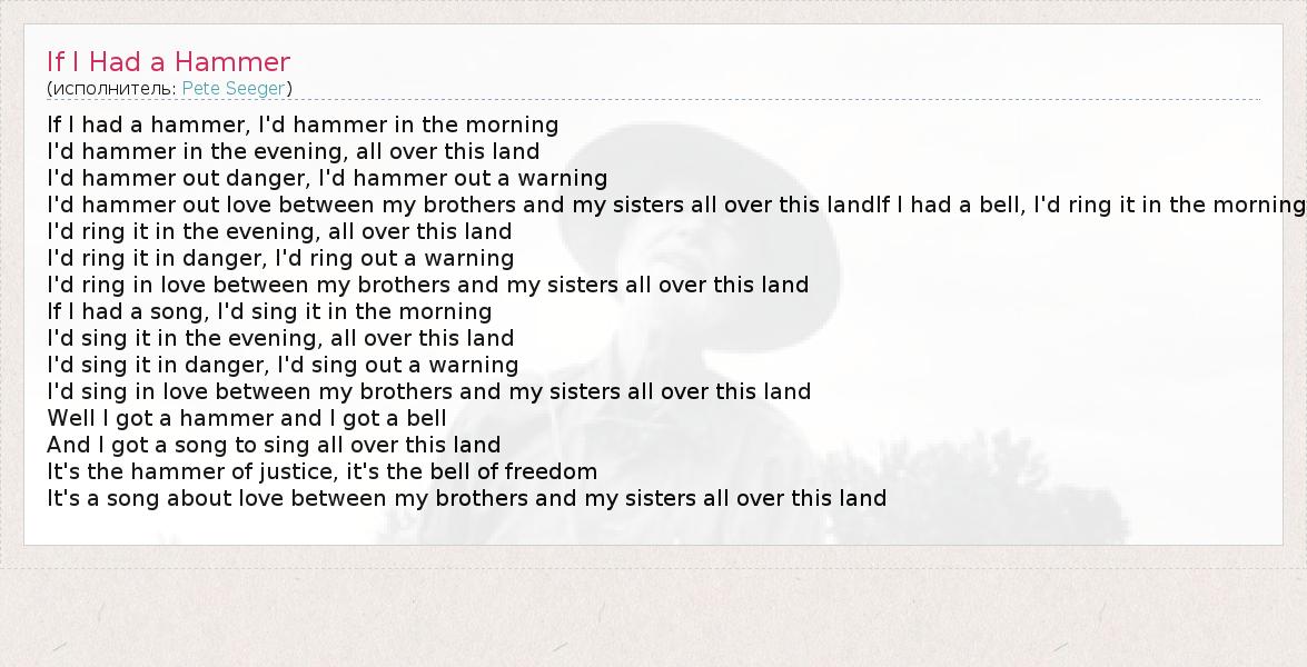 А как ты думаешь, о чем песня "If I Had a Hammer" ?