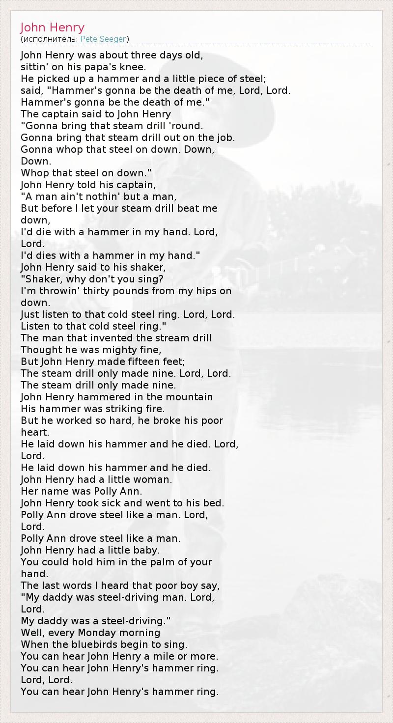 А как ты думаешь, о чем песня "John Henry" ?