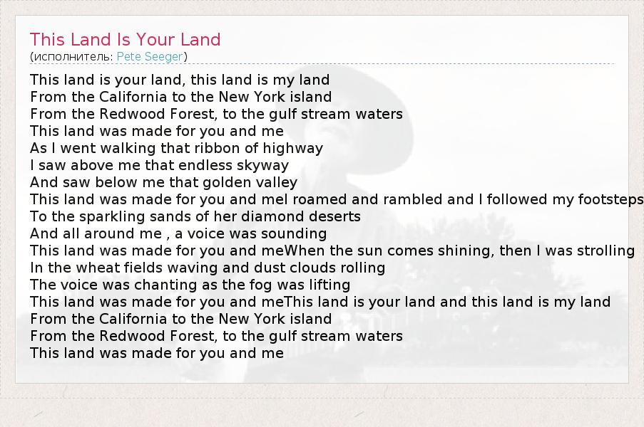 А как ты думаешь, о чем песня "This Land Is Your Land" ?