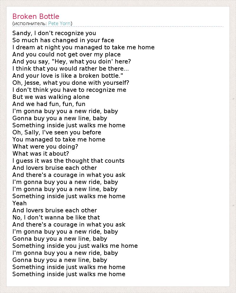 А как ты думаешь, о чем песня "Broken Bottle" ?