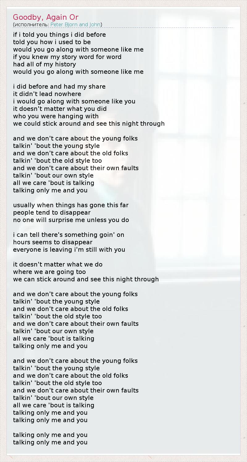 А как ты думаешь, о чем песня "Goodby, Again Or" ?