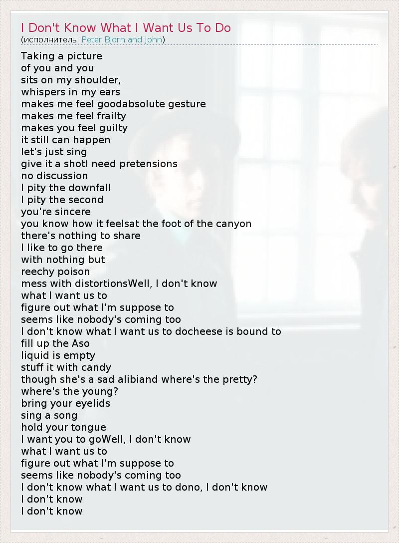 А как ты думаешь, о чем песня "I Don't Know What I Want Us To Do" ?