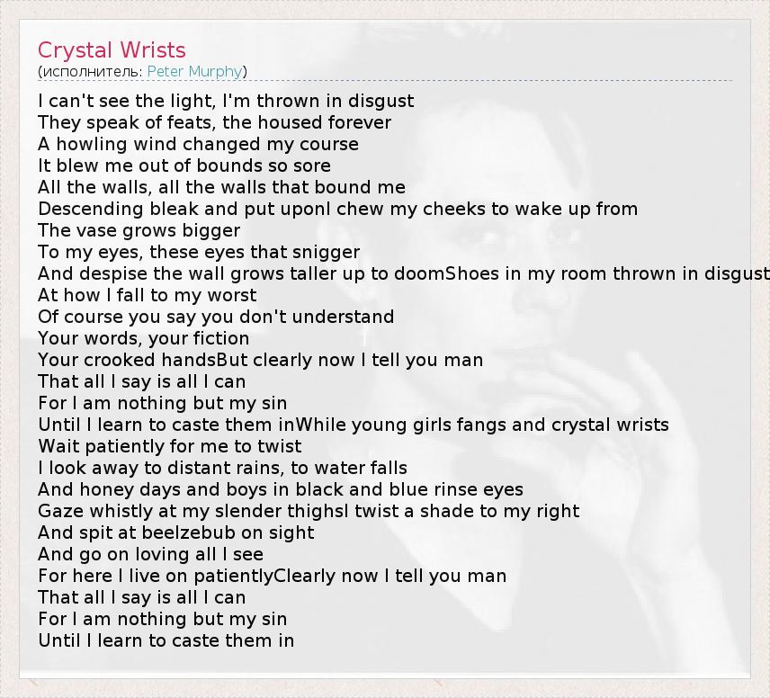 А как ты думаешь, о чем песня "Crystal Wrists" ?