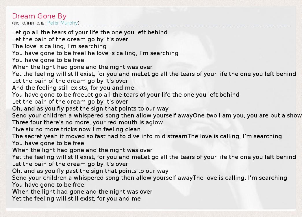 А как ты думаешь, о чем песня "Dream Gone By" ?