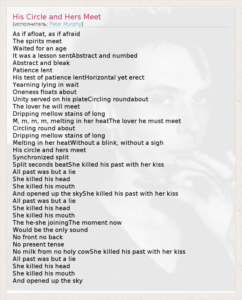 А как ты думаешь, о чем песня "His Circle and Hers Meet" ?