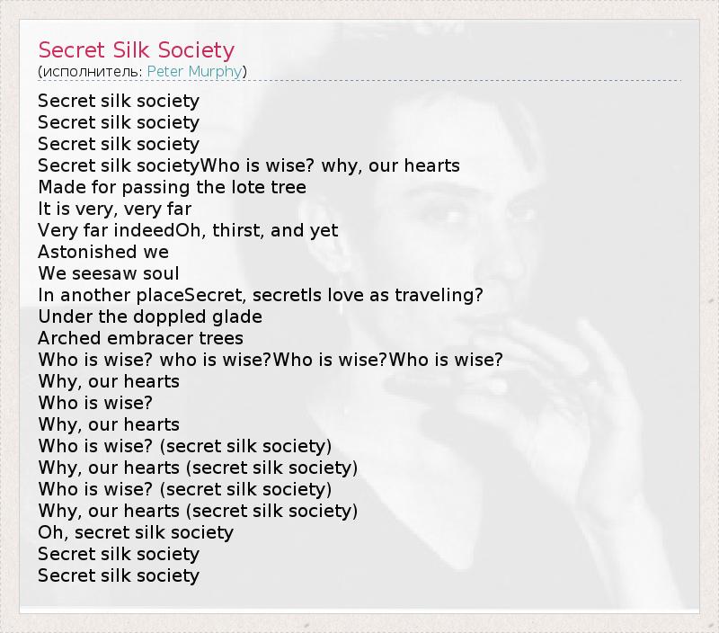 А как ты думаешь, о чем песня "Secret Silk Society" ?