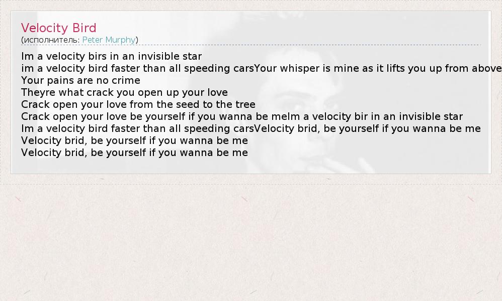 А как ты думаешь, о чем песня "Velocity Bird" ?