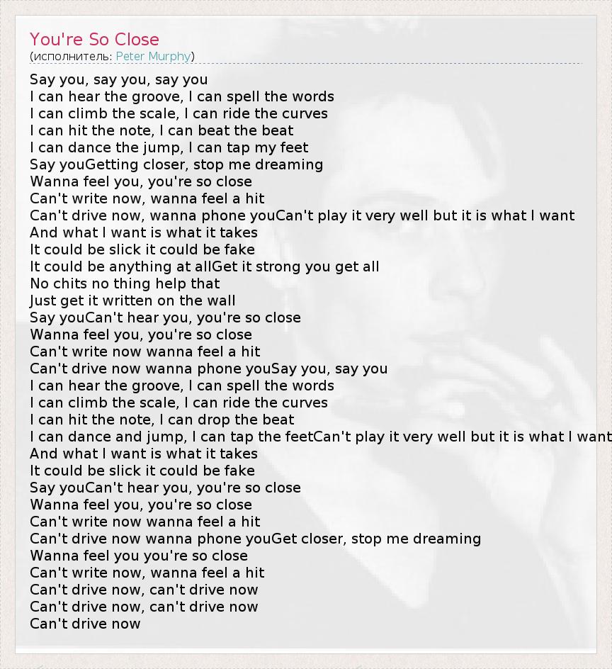 А как ты думаешь, о чем песня "You're So Close" ?