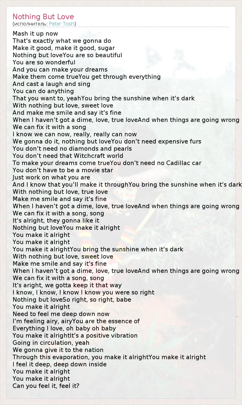 А как ты думаешь, о чем песня "Nothing But Love" ?