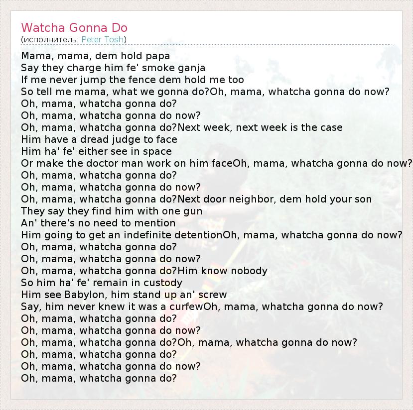 А как ты думаешь, о чем песня "Watcha Gonna Do" ?