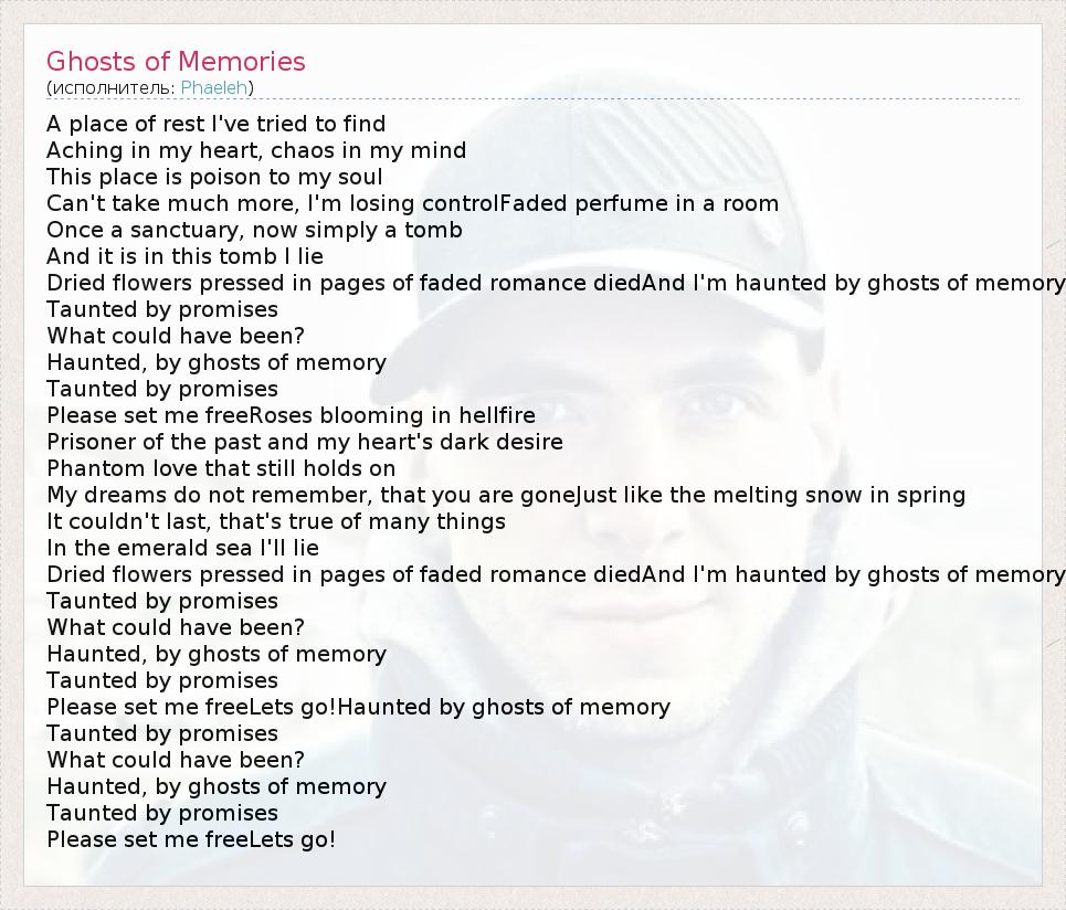 Dried flowers pressed in pages of faded romance diedAnd I'm haunted by ghosts of memory