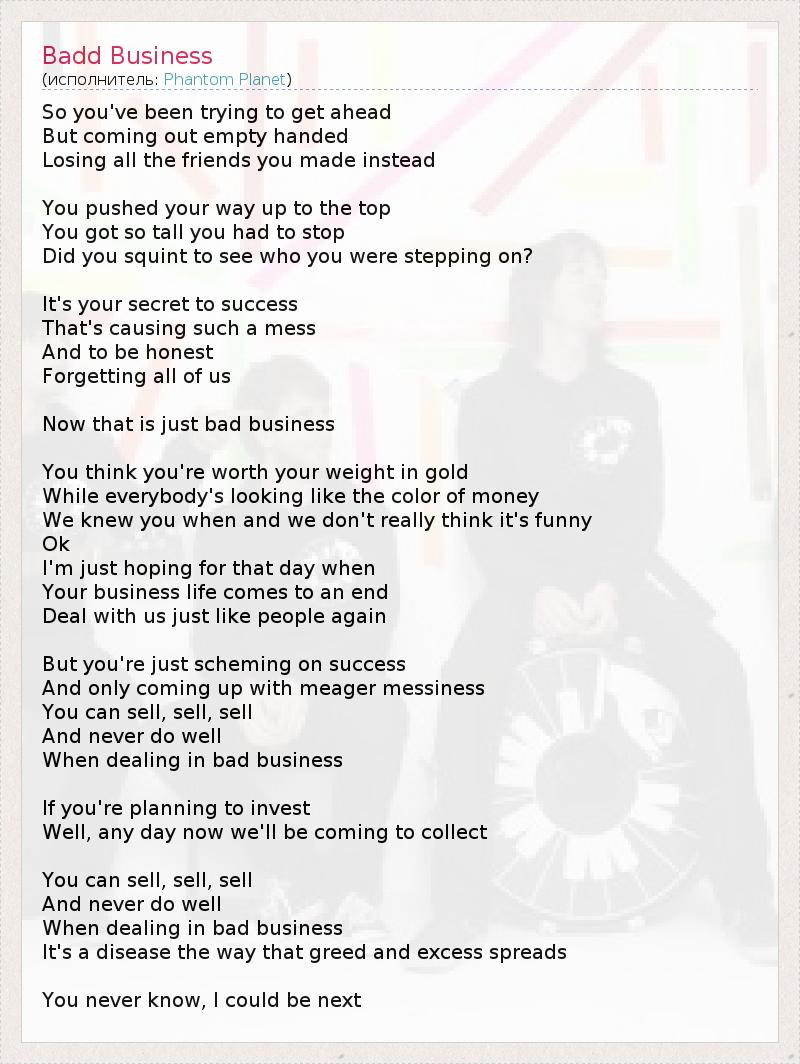 А как ты думаешь, о чем песня "Badd Business" ?