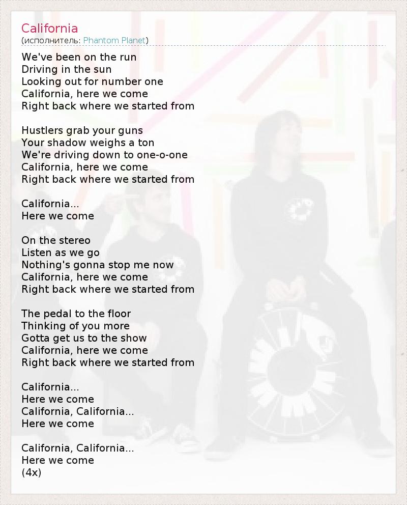 Это интересно:Phantom Planet – группа из Южной Калифорнии, относится к альтернативному року. Группа более широко известна по треку "California", который был создан для популярного молодёжного сериала "The O.C.".Группа существует с 1994 года по наши дни, дебютный альбом появился 1997 году (Phantom Planet is Missing), в 2002 году вышел второй их альбом (The Guest), который принес наибольший успех благодаря песне "California".... продолжение