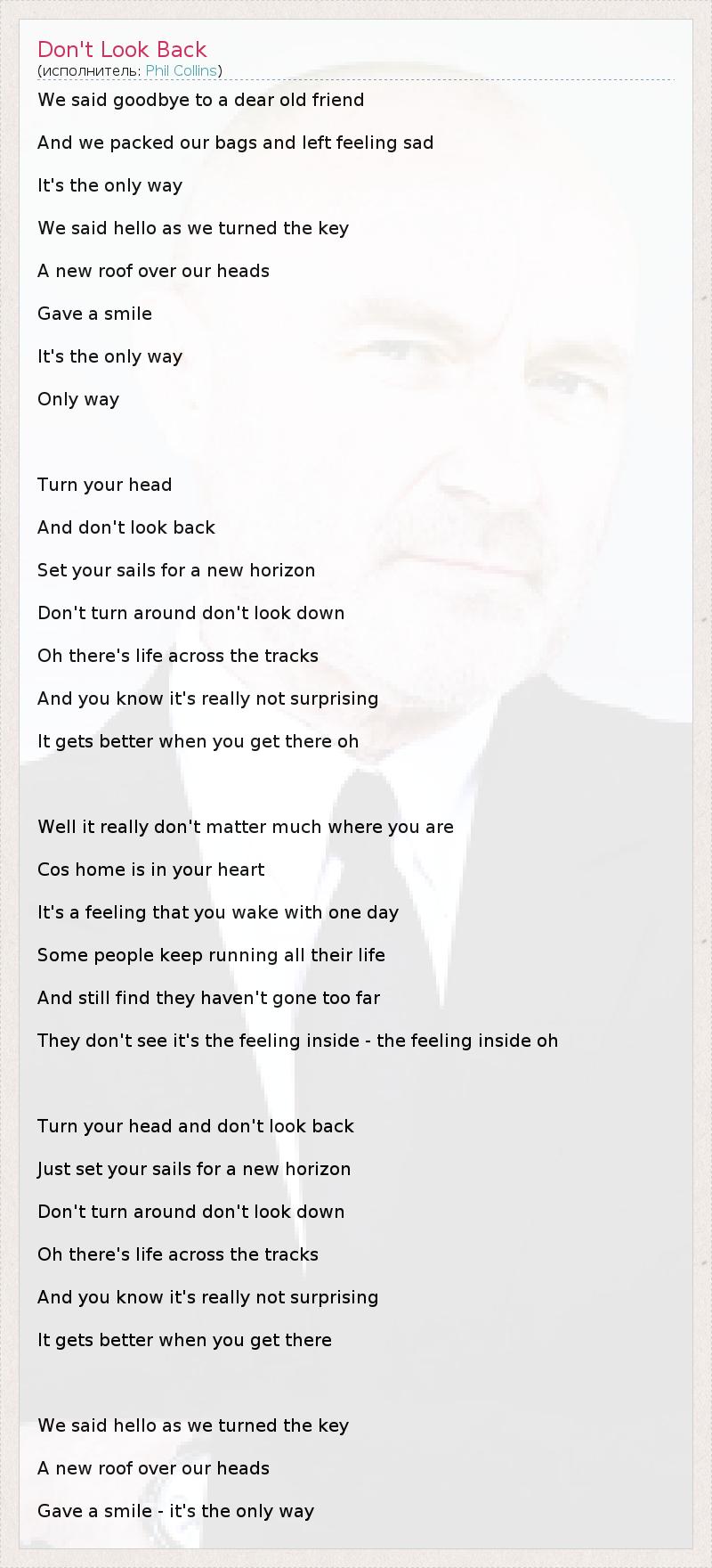 А как ты думаешь, о чем песня "Don't Look Back" ?