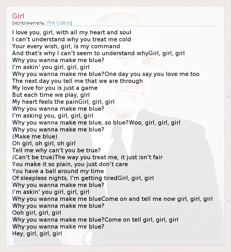 Why you wanna make me blue?Come on tell girl, girl, girl