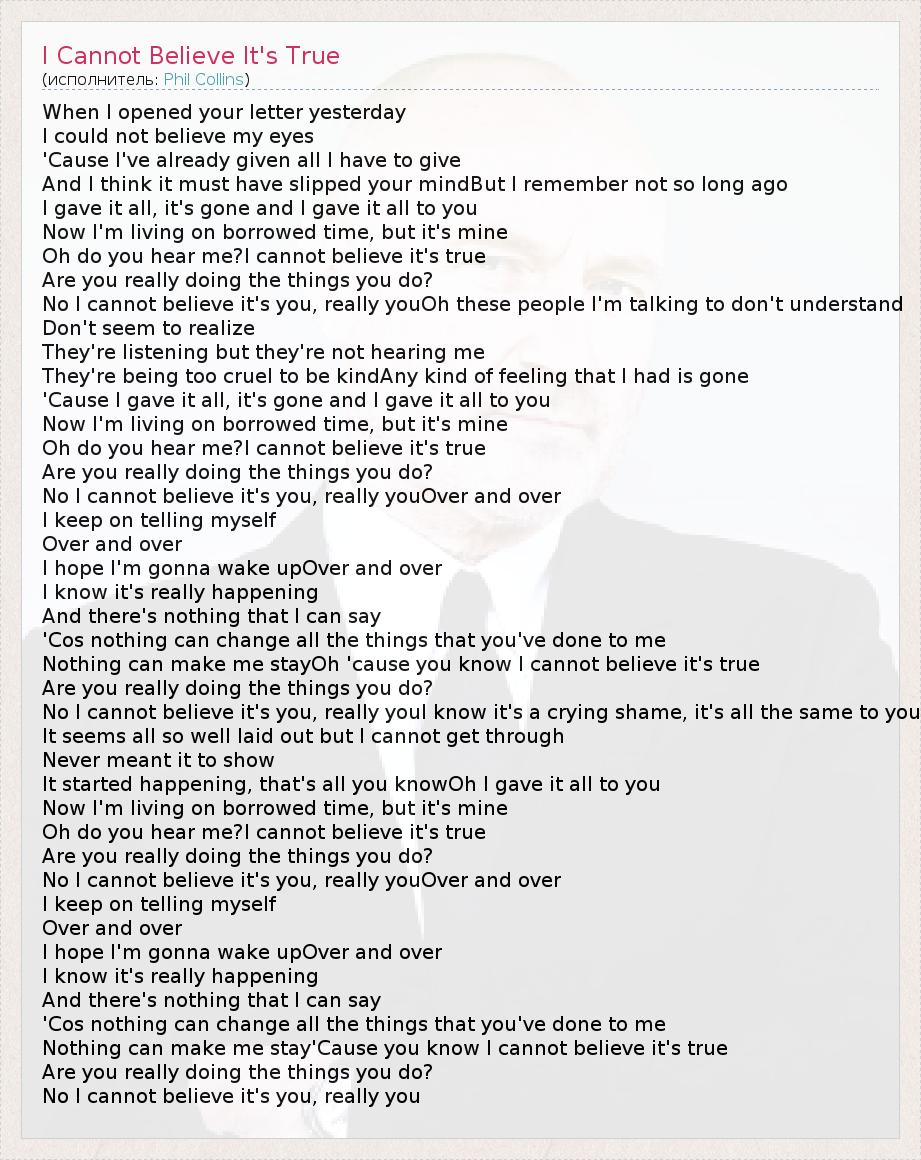 ГлавнаяИсполнителиPhil CollinsI Cannot Believe It's True