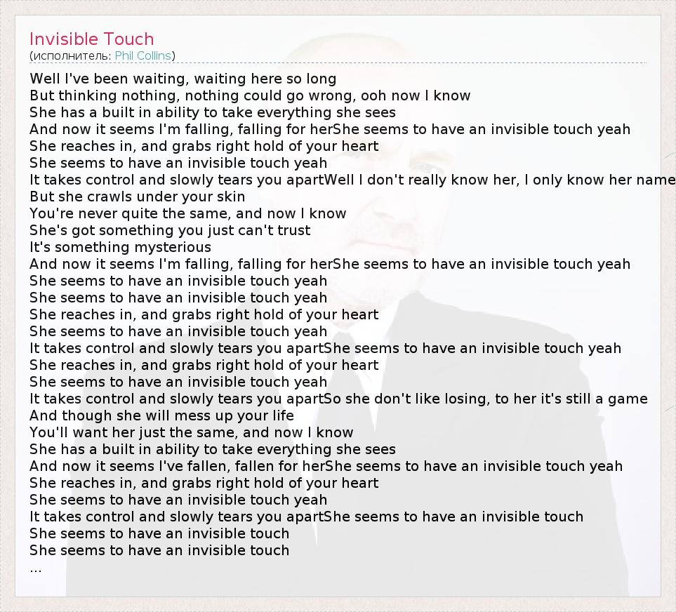А как ты думаешь, о чем песня "Invisible Touch" ?