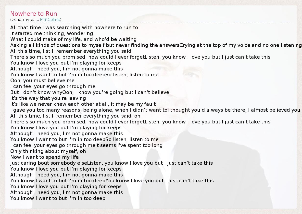 А как ты думаешь, о чем песня "Nowhere to Run" ?