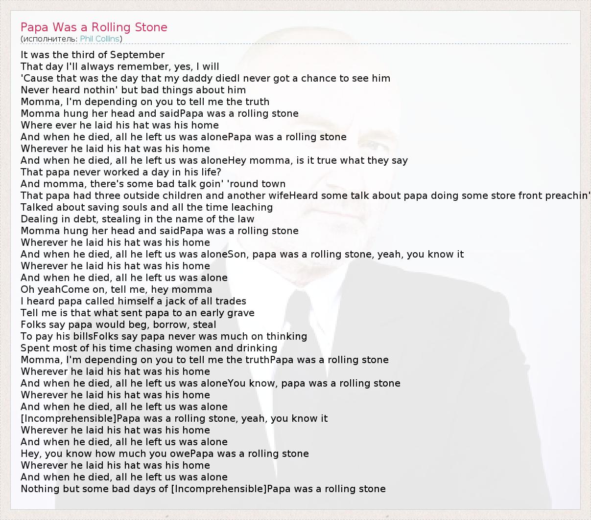 ГлавнаяИсполнителиPhil CollinsPapa Was a Rolling Stone