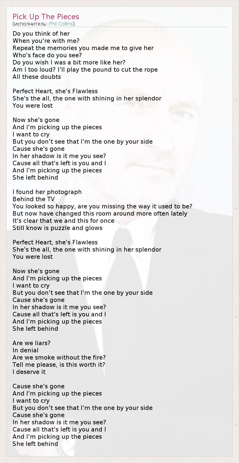 А как ты думаешь, о чем песня "Pick Up The Pieces" ?
