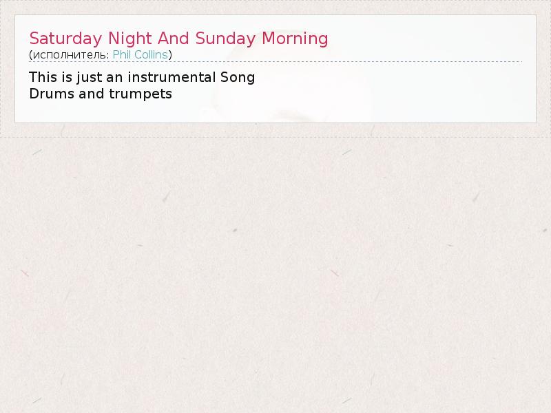 А как ты думаешь, о чем песня "Saturday Night And Sunday Morning" ?