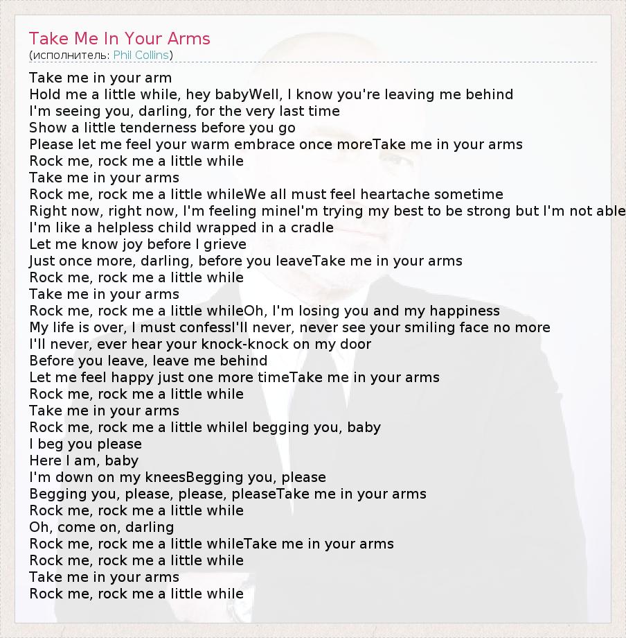 А как ты думаешь, о чем песня "Take Me In Your Arms" ?