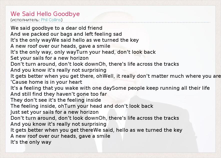 А как ты думаешь, о чем песня "We Said Hello Goodbye" ?