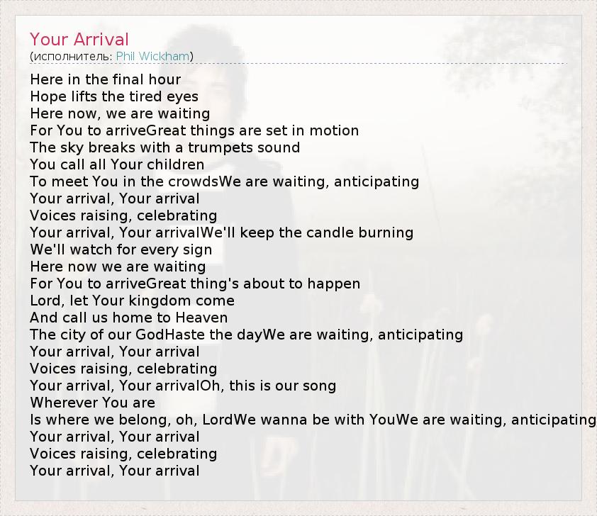 А как ты думаешь, о чем песня "Your Arrival" ?