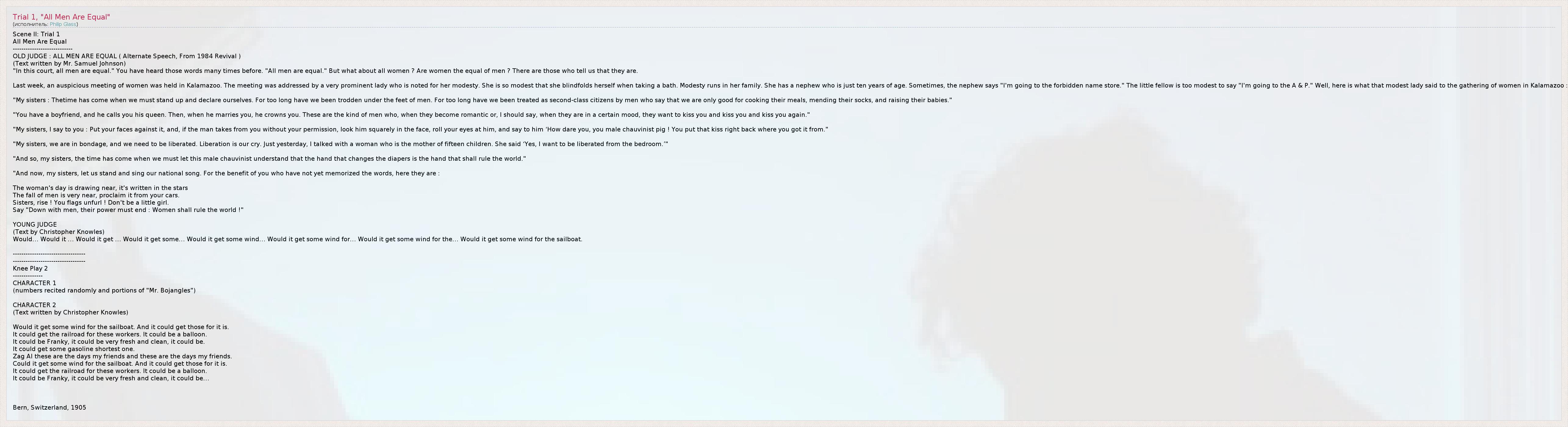 ГлавнаяИсполнителиPhilip GlassTrial 1, "All Men Are Equal"