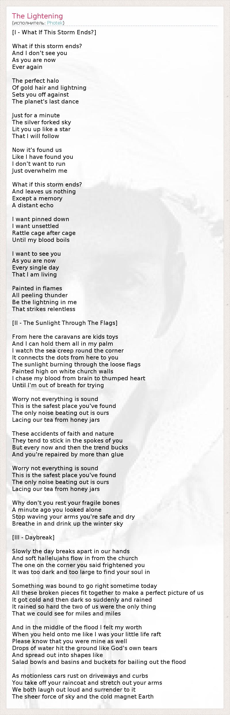 А как ты думаешь, о чем песня "The Lightening" ?