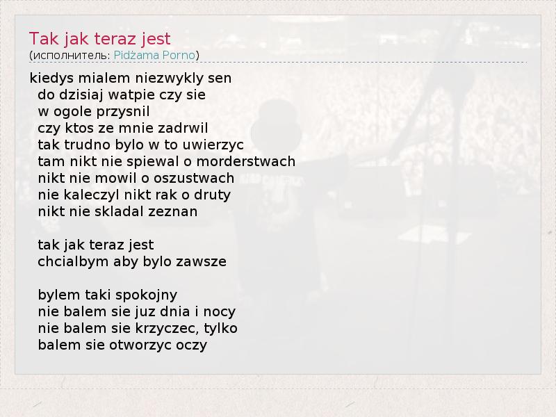 А как ты думаешь, о чем песня "Tak jak teraz jest" ?