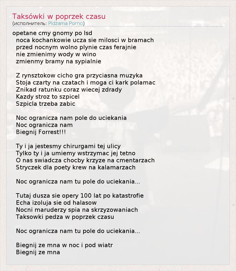 ГлавнаяИсполнителиPidżama PornoTaksówki w poprzek czasu