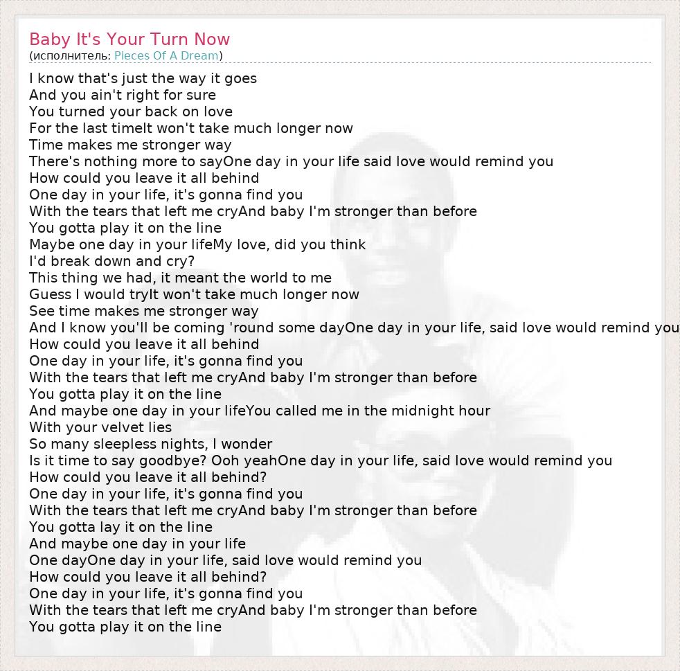 А как ты думаешь, о чем песня "Baby It's Your Turn Now" ?