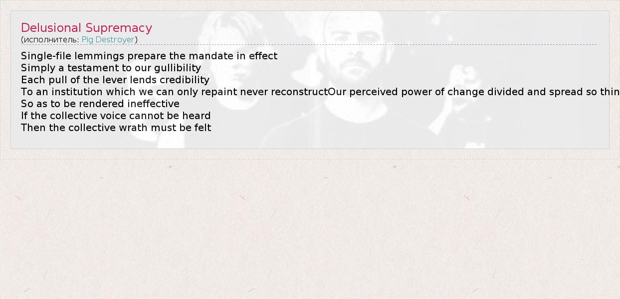 А как ты думаешь, о чем песня "Delusional Supremacy" ?