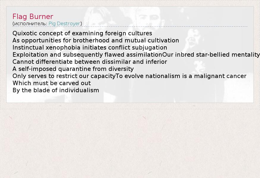 А как ты думаешь, о чем песня "Flag Burner" ?
