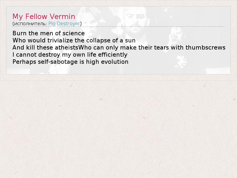 А как ты думаешь, о чем песня "My Fellow Vermin" ?