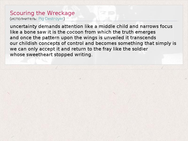 А как ты думаешь, о чем песня "Scouring the Wreckage" ?