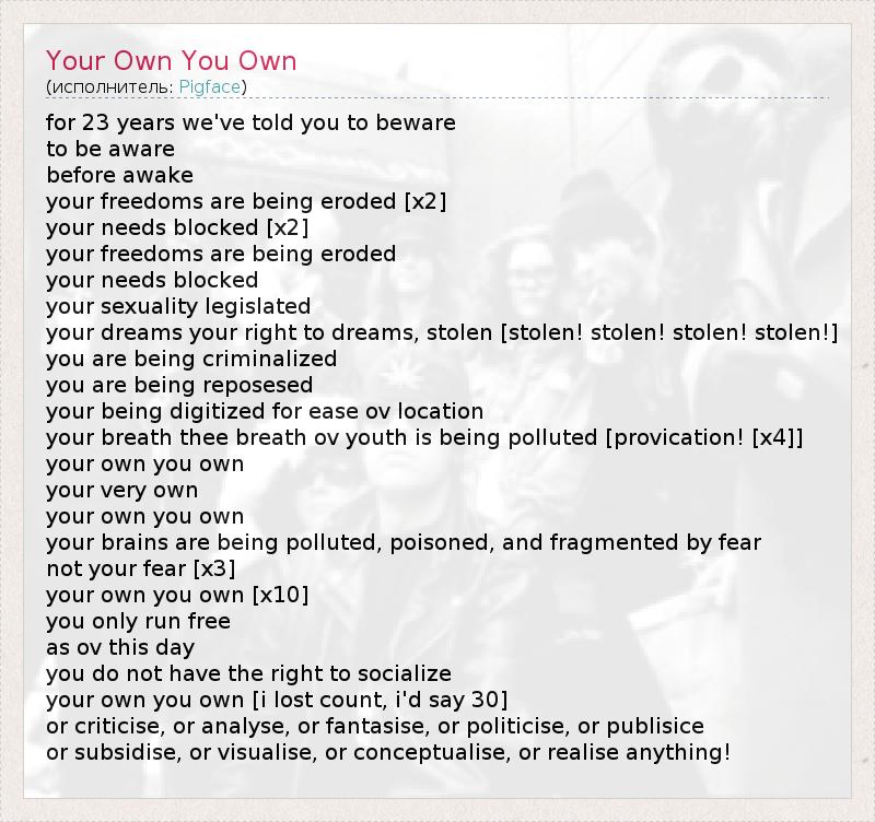 А как ты думаешь, о чем песня "Your Own You Own" ?