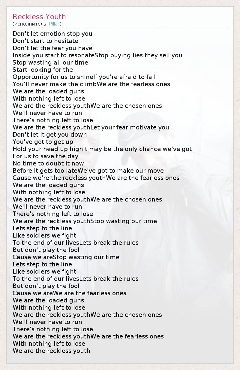 А как ты думаешь, о чем песня "Reckless Youth" ?