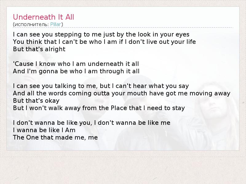 А как ты думаешь, о чем песня "Underneath It All" ?