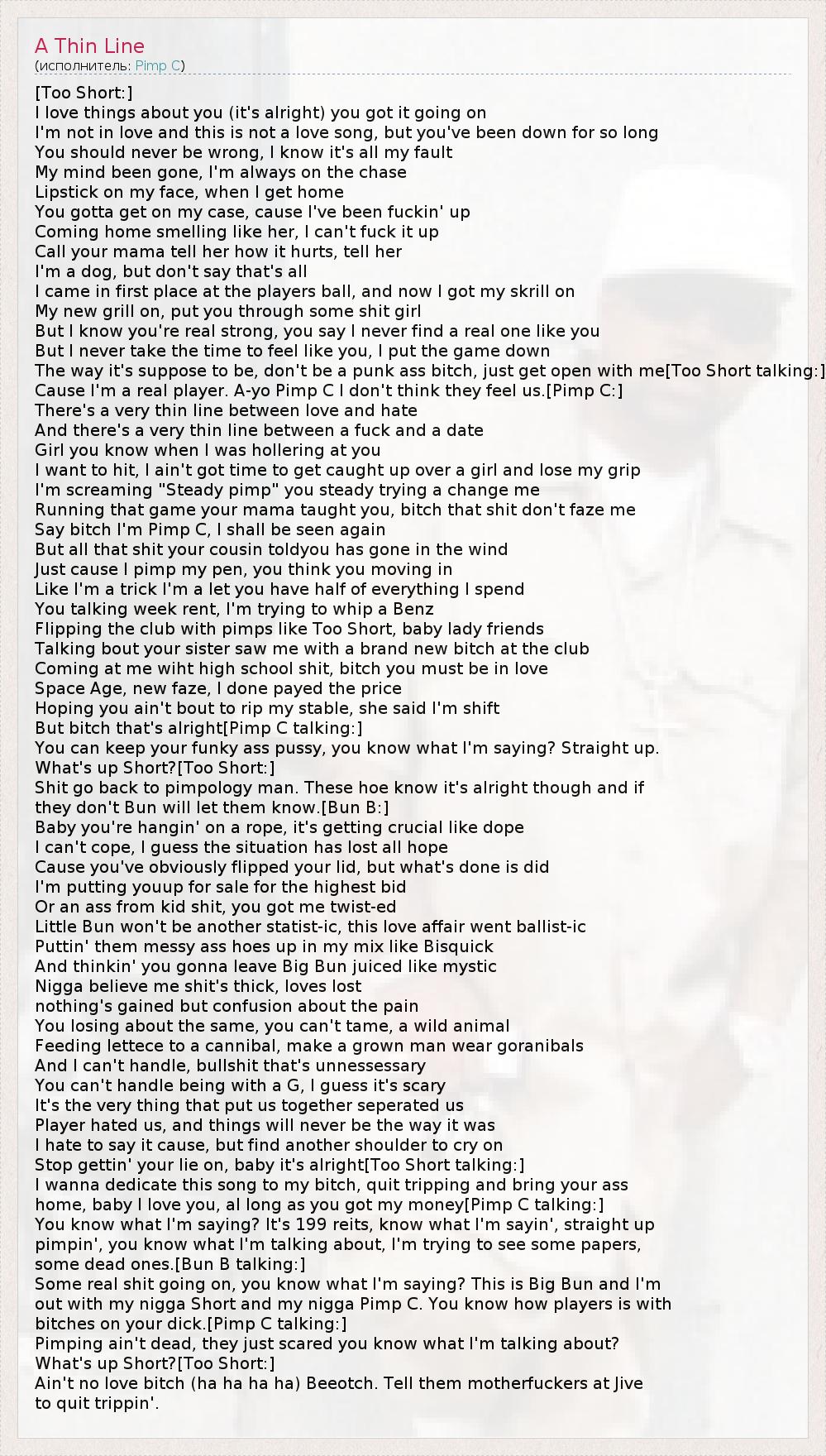 But bitch that's alright[Pimp C talking:]