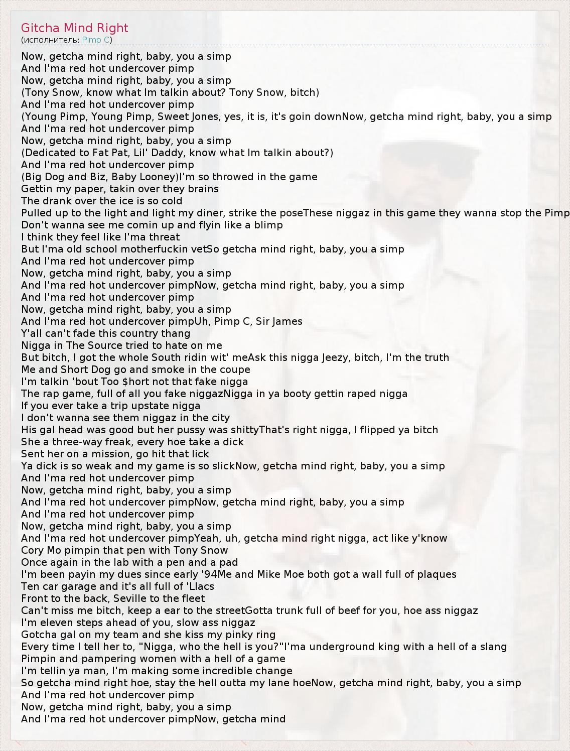 So getcha mind right hoe, stay the hell outta my lane hoeNow, getcha mind right, baby, you a simp