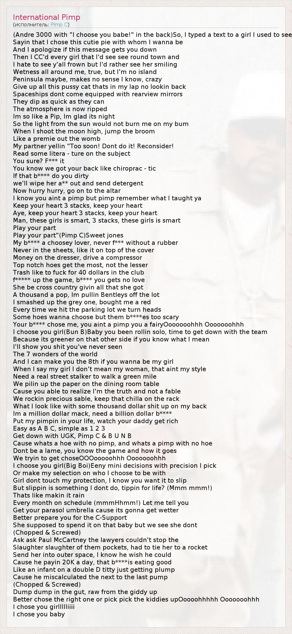 А как ты думаешь, о чем песня "International Pimp" ?