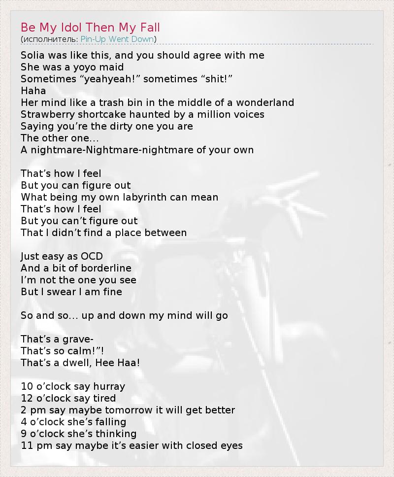 А как ты думаешь, о чем песня "Be My Idol Then My Fall" ?