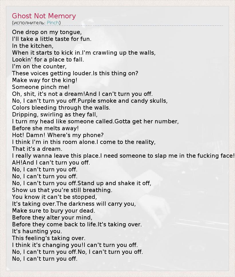 А как ты думаешь, о чем песня "Ghost Not Memory" ?
