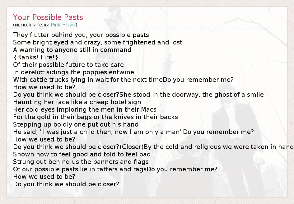 А как ты думаешь, о чем песня "Your Possible Pasts" ?