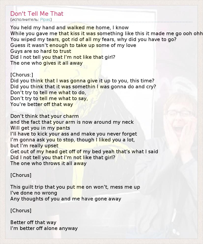 А как ты думаешь, о чем песня "Don't Tell Me That" ?