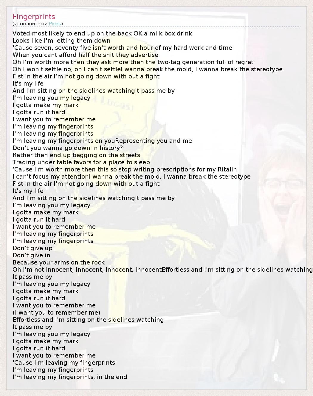 А как ты думаешь, о чем песня "Fingerprints" ?