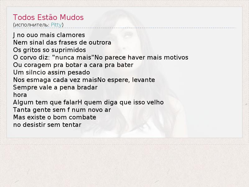 А как ты думаешь, о чем песня "Todos Estão Mudos" ?