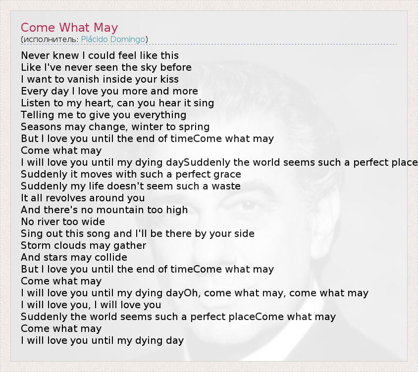А как ты думаешь, о чем песня "Come What May" ?